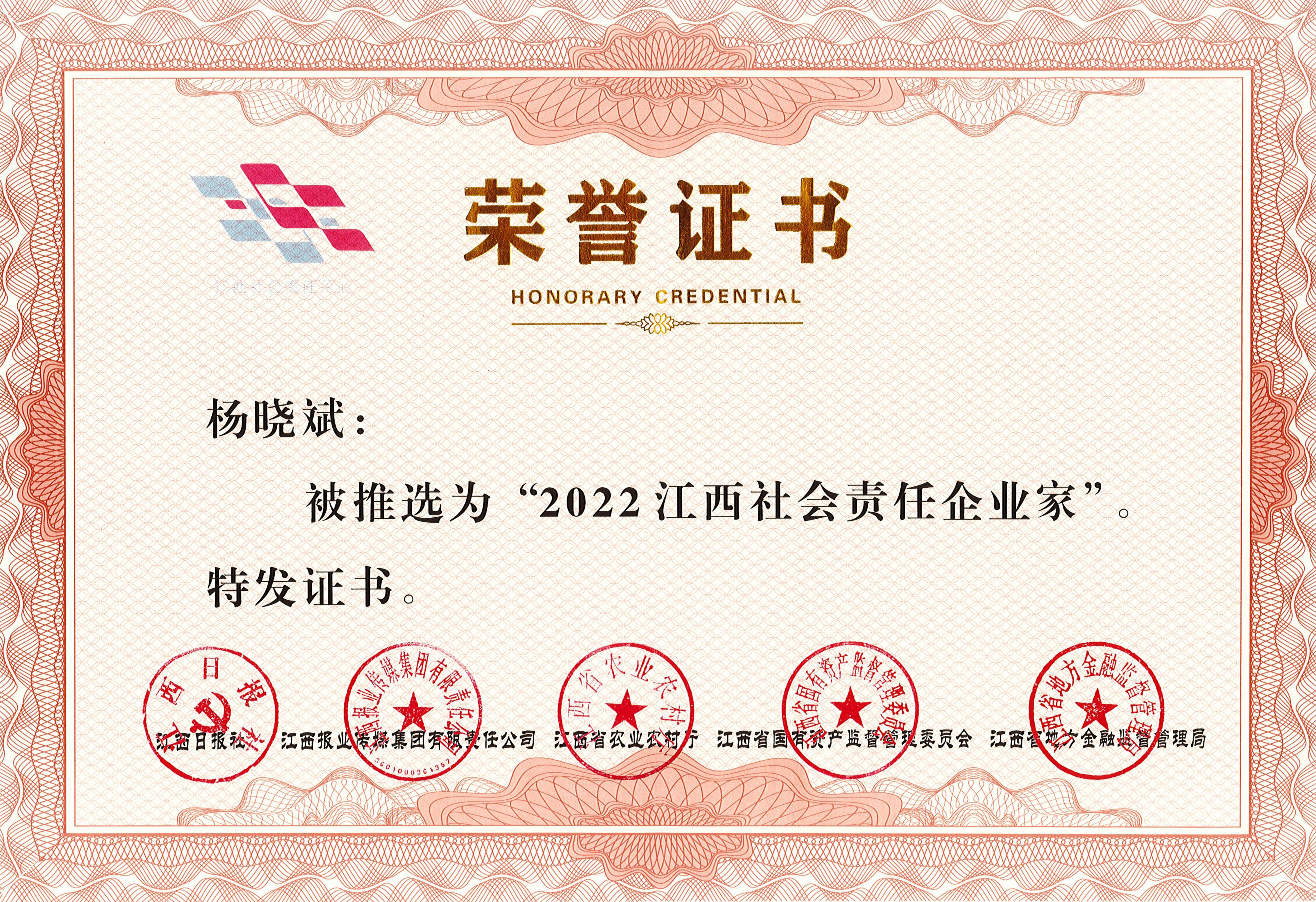 集团党委书记、董事长杨晓斌荣获“2022江西社会责任...