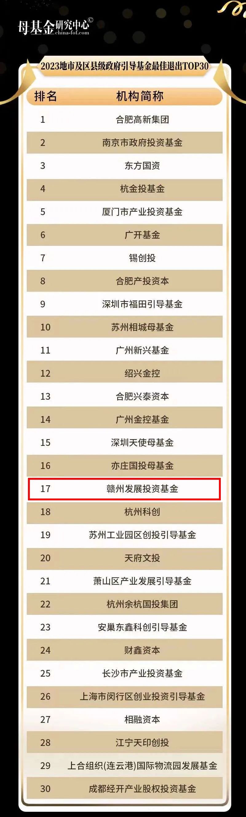 喜报连连丨赣州发展投资基金荣获中国母基金研究中心专项...