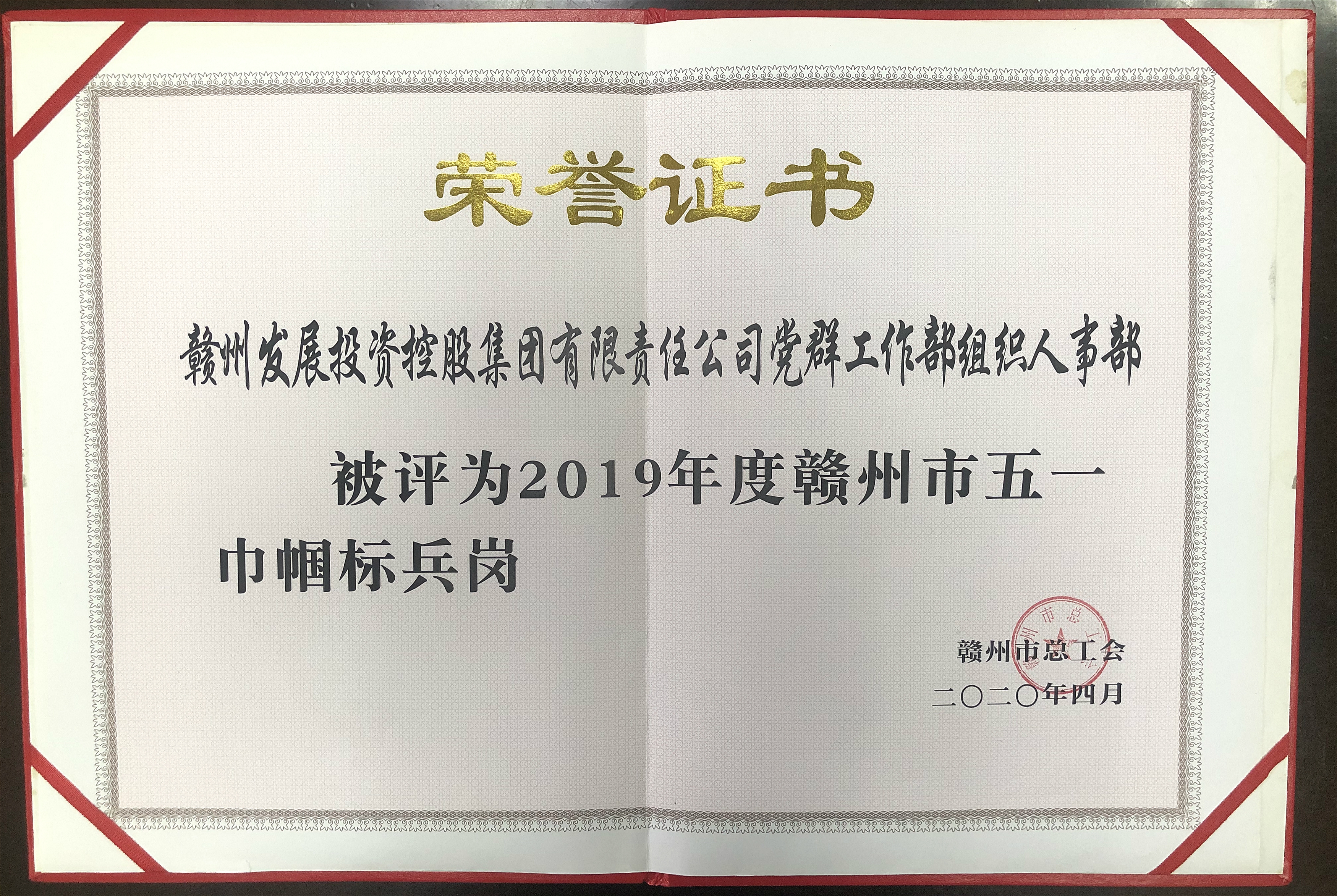 集团党群工作部(组织人事部)荣获“2019年赣州市...